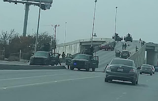 Al menos cinco sicarios quedaron abatidos dentro de una camioneta Ram color negra a un costado del puente Mazatlán y que según reportes no contaban con la "frecuencia de mando" que alerta las posiciones del gobierno que mandan los halcones desde sus puntos o esquinas.